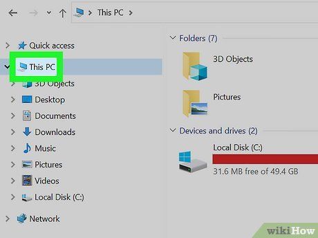 Nhấp vào This PC. Nó ở trong bảng ở phía bên trái của cửa sổ và sẽ hiển thị các ổ đĩa trên 'This PC' ở phía bên phải của cửa sổ.