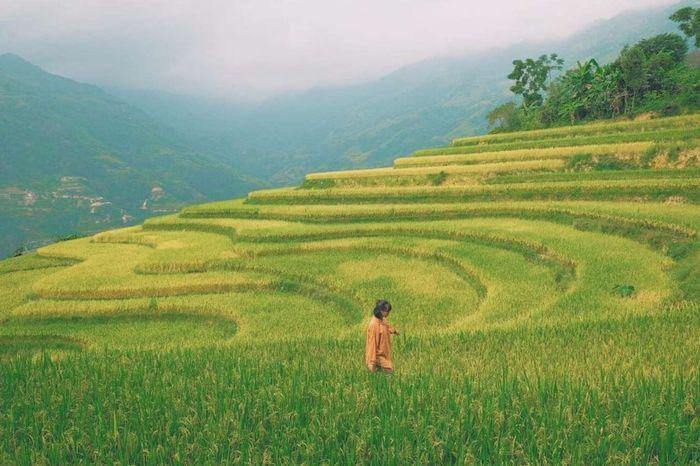 Ruộng bậc thang mùa lúa chín rực rỡ tại Hoàng Su Phì. @Mytour Go & Share