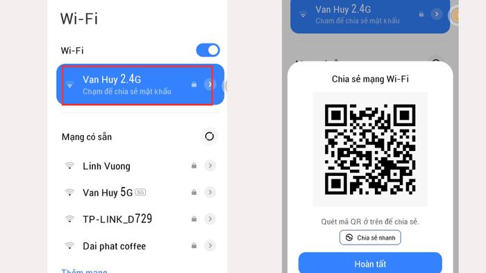 Chia sẻ Wifi với thiết bị khác qua mã QR