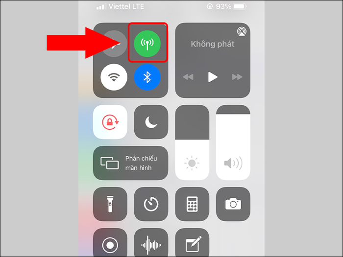 Bước 1: Vuốt màn hình xuống để mở trung tâm điều khiển > Nhấn vào biểu tượng kết nối