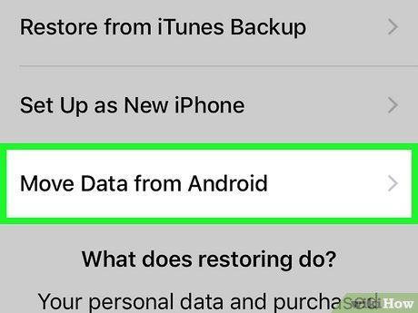 Chạm vào Chuyển Dữ Liệu từ Android trên iPhone của bạn. Bạn sẽ thấy điều này trong danh sách các tùy chọn dưới các tùy chọn sao lưu. Nếu bạn không thấy tùy chọn này, điện thoại iPhone của bạn quá cũ để thực hiện việc chuyển tự động (nó đang sử dụng phiên bản iOS cũ hơn 5). Trong trường hợp đó, bạn sẽ muốn sử dụng phương pháp đồng bộ Google.
