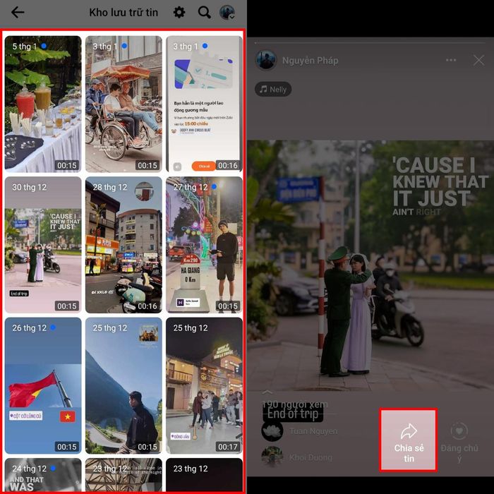 Bước 3: Nhấn vào biểu tượng Chia sẻ tin ở góc dưới bên phải màn hình và chọn Chia sẻ lên tin. Tin của bạn sẽ được đăng lại như ban đầu.