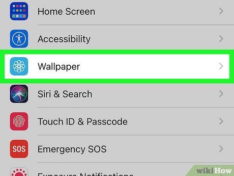 Di chuyển xuống và chạm vào Hình nền. Nó nằm trong nhóm cài đặt thứ ba.