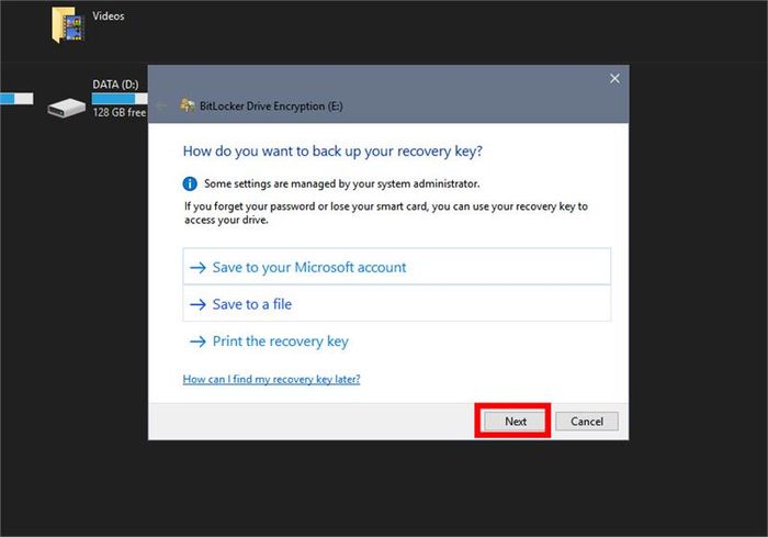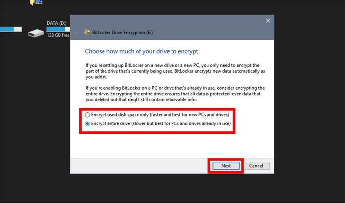 Bước 4: Tiếp theo, bạn phải chọn một trong hai tùy chọn mã hóa. Sau đó nhấn Next.