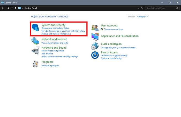 Bước 2: Trong Control Panel, bạn kích chuột vào System and Security.
