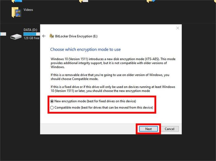 Nếu bạn dùng USB trên máy tính chạy Windows 10 version 1511 trở lên, hãy chọn chế độ mã hóa mới.