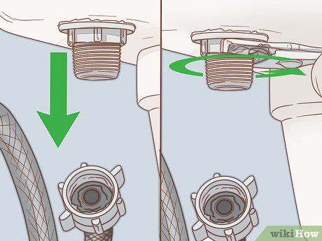 Đính kèm lại ống cấp nước. Gắn ống cấp nước vào chân van và xử dụng các vòng đệm để kết nối ống cấp nước nhẹ nhàng vào đáy bồn toilet. Vặn chặt đai ốc nhựa để ngăn chặn rò rỉ khi mở nguồn cấp nước.