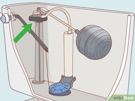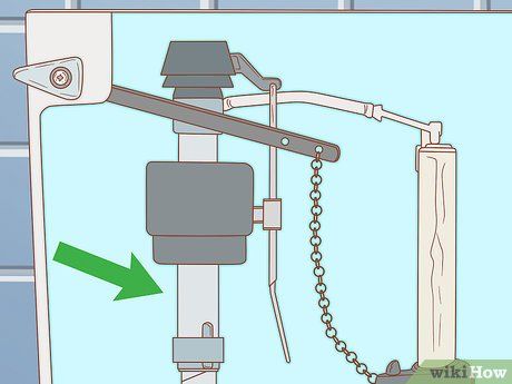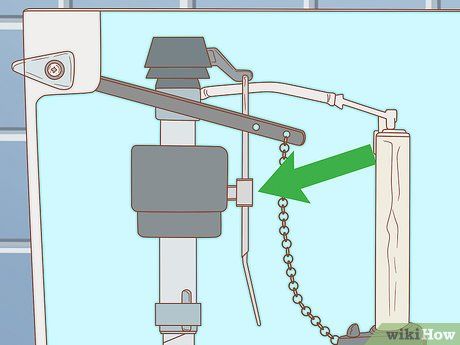 Xác định vị trí cần điều chỉnh gần phao. Cần điều chỉnh là một ống nhỏ và dài, nối với van cấp. Thường chạy song song với van hoặc bắt ngang từ trên đỉnh. Dùng để tăng giảm lượng nước trong bồn.