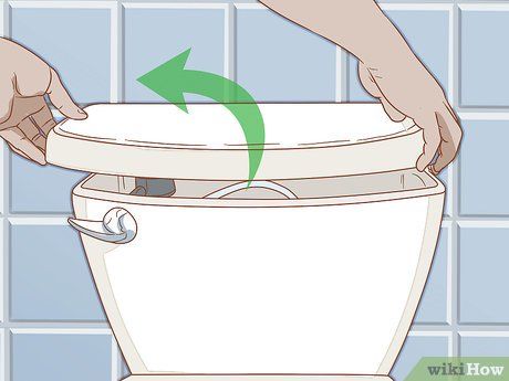 Mở Nắp Bồn Toilet. Nhấc nhẹ nắp bồn toilet và đặt sang một bên. Bạn đã có thể tiếp cận cơ cấu bên trong bồn toilet. Hãy cẩn thận để không làm rơi nắp và đừng để nó ở những nơi dễ bị vỡ. Nắp bồn xả toilet thường được làm từ sứ, nên bạn cần đề phòng để không làm hỏng nó.