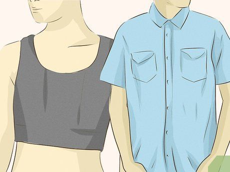 - Thử một chiếc áo sơ mi cổ bẻ được thiết kế để giữ không cài, và mặc nó không cài nút qua một chiếc áo thun (với hoặc không có áo thun nén dưới đáy). Sự kết hợp này sẽ giúp che giấu ngực của bạn.