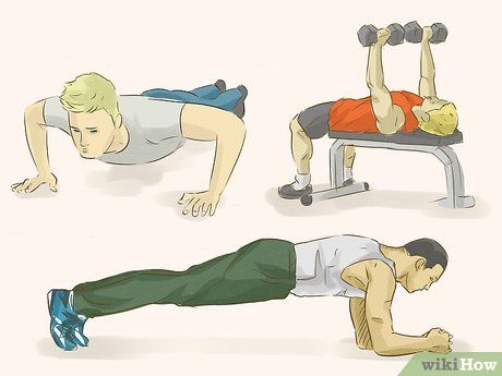 - Thêm vào chế độ tập luyện của bạn, ví dụ: đẩy tay; plank; đẩy tạ; đẩy tạ nằm. Cân nhắc làm việc với một HLV để đảm bảo bạn đang thực hiện các bài tập đúng cách.
