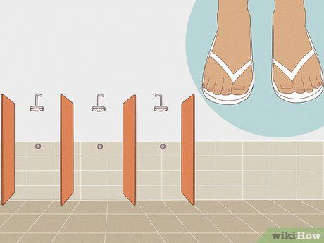 Mang dép khi bạn ở trong phòng tắm công cộng hoặc phòng thay đồ. Nấm có thể lan truyền trên bề mặt ẩm ướt, vì vậy hãy có một đôi dép lê rẻ tiền hoặc dép lê mà bạn có thể mang theo khi bạn đến phòng tập gym, bể bơi hoặc phòng thay đồ của trường. Thay vì đi trần chân và rủi ro bị nhiễm nấm móng, chỉ cần đeo dép lê của bạn để có một lớp bảo vệ bổ sung.