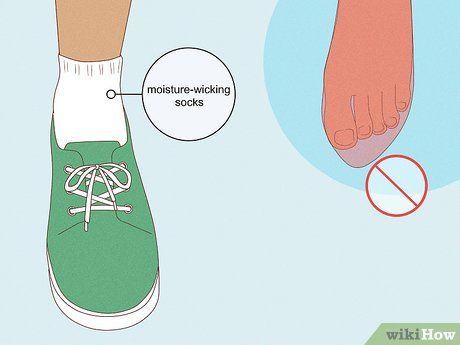 Mặc tất và giày thoáng khí. Nấm móng dễ dàng hình thành khi giày và tất của bạn ẩm ướt. Thay vì phải đối mặt với đôi chân đổ mồ hôi, hãy đeo một đôi tất thấm ẩm để nhanh chóng khô ráo. Sau đó, hãy mang giày có phần đầu chân rộng và hỗ trợ tốt để giúp chúng thông hơi.