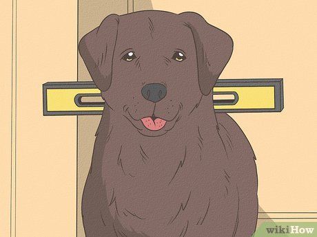 Đặt một cái cân bằng qua điểm cổ của chó. Sử dụng một cây cân bằng dài, như một cây cân bằng của thợ mộc, đặt chiều dài của nó lên điểm cổ của chó với đầu tiếp xúc với tường. Đảm bảo rằng cây cân bằng thực sự là cân bằng, sau đó đánh dấu điểm mà đáy của nó tiếp xúc với tường. Điều này đã chuyển đổi đo lường chiều cao của chó lên tường.