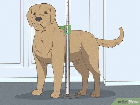 Sử dụng công cụ đo chiều cao. Có các que đo được cung cấp từ các nhà cung cấp thú y có một cánh tay có thể điều chỉnh ra bên. Điều này hữu ích khi đo chiều cao của chó vì nó cho phép đáy của que đo ngồi trên mặt đất cùng một lúc với việc cánh tay được điều chỉnh để nằm ở điểm cổ của chó.