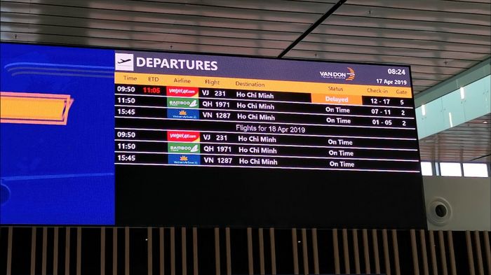 Để hạn chế bớt tiếng ồn, hiện nay nhiều sân bay lớn ở VN đã bỏ đọc thông báo bằng loa mà chỉ hiện thông báo trên bảng điện tử. Về cơ bản thì bảng điện tử sẽ có 7 - 8 cột thể hiện những nội dung như sau:Cột thông tin trên bảng điện tử: