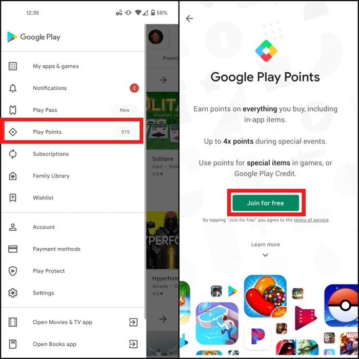 Bước 1: Đầu tiên, tham gia chương trình Play Points bằng cách đăng ký tham gia. Truy cập vào CH Play và nhấn vào Play Points > Join for free.