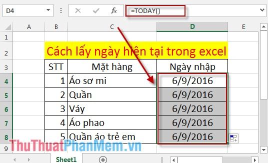 Dưới đây là tổng hợp các cách thông dụng để đưa ra ngày hiện tại trong Excel.