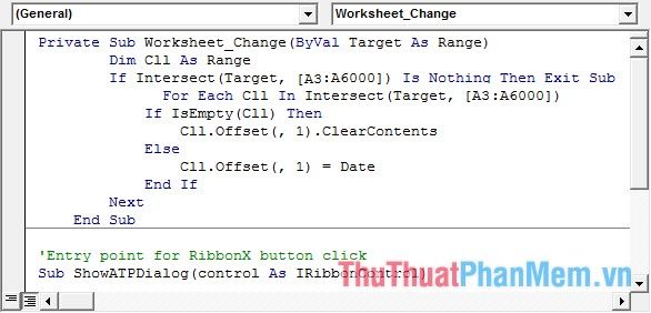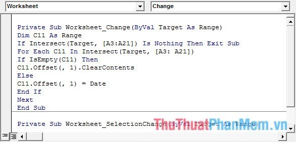 Lưu ý: Bạn có thể điều chỉnh phạm vi nhập liệu bằng cách thay đổi câu lệnh trong sự kiện Change của Worksheet.