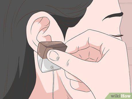 - Đợi vài phút cho túi trà nguội, sau đó đắp lên vùng đau ở lỗ xỏ khuyên.