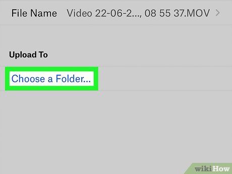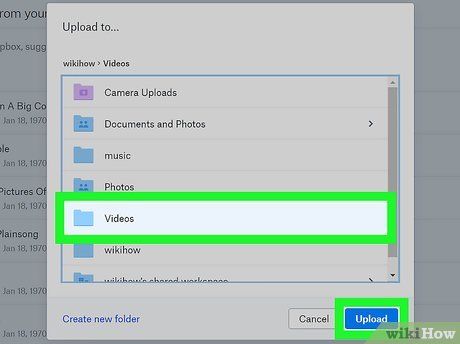 Chọn một thư mục và nhấp vào Tải lên. Thư mục bạn chọn là nơi bạn sẽ tìm thấy tệp video của mình sau khi tải lên hoàn tất. Để tải lên tệp vào thư mục chính của bạn, đừng chọn bất kỳ tùy chọn nào—chỉ cần nhấp vào Tải lên.