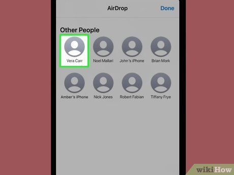 Chạm vào người nhận video. Miễn là người bạn muốn chia sẻ ở trong tầm và có thể chấp nhận Airdrop của bạn, bạn sẽ thấy tên của họ trong danh sách. Khi người kia chấp nhận Airdrop của bạn, video sẽ được chuyển đến máy tính, điện thoại hoặc máy tính bảng của họ.