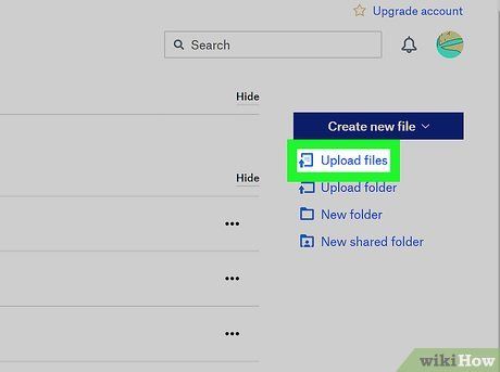 Nhấp vào Tải lên tệp tin. Nó ở phần bên phải gần phía trên của menu.