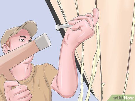 Sau đó quay lại và sử dụng sự chuyển động nghiêng với sắt để đánh ni vào nhà với cái búa.