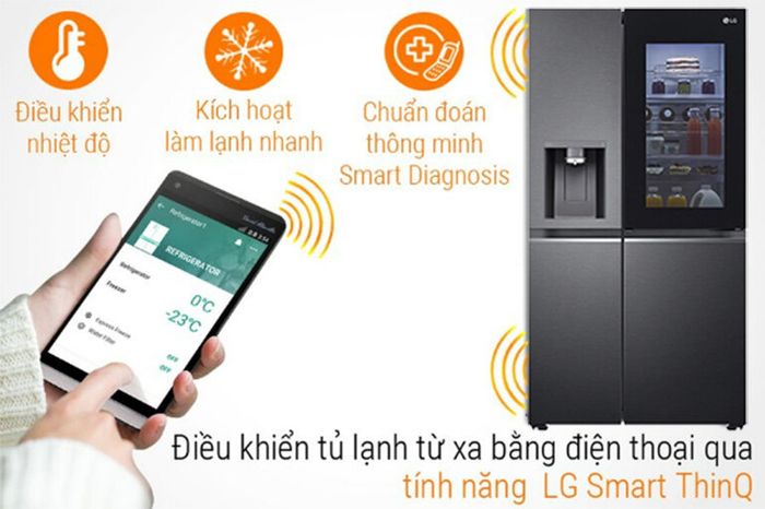 Ứng dụng LG Smart ThinQ giúp cải tiến và nâng cao trải nghiệm cho người sử dụng đối với các sản phẩm thông minh của LG, trong đó có tủ lạnh. Ứng dụng này miễn phí trên CH Play và App Store, từ đó bạn có thể điều chỉnh các tính năng cho tủ lạnh bằng smartphone mà không cần lại gần tủ.