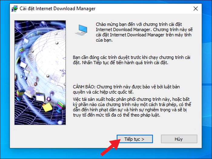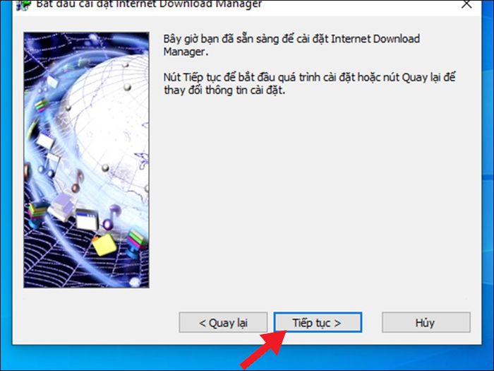 Nhấn nút Tiếp tục để tiếp tục quá trình cài đặt.