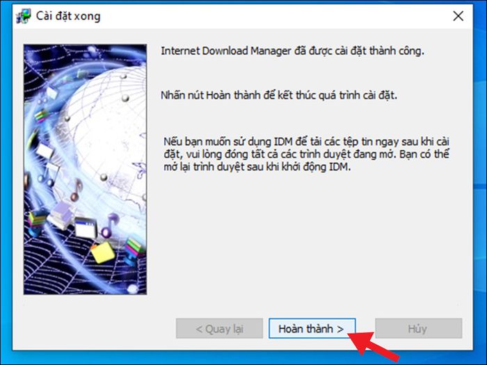 Nhấn vào Hoàn thành để kết thúc quá trình cài đặt.
