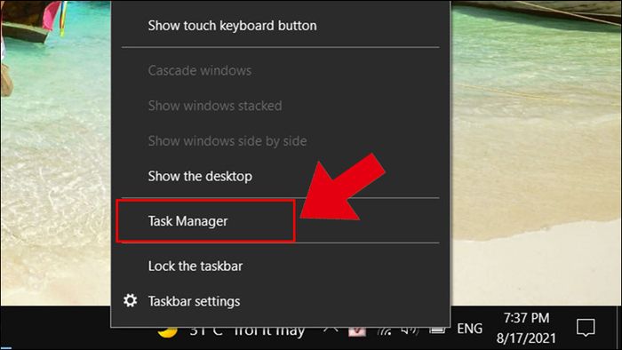 Bước 1: Click phải vào thanh Taskbar > Chọn Task manager.