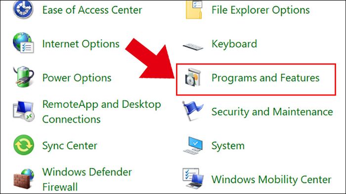 - Bước 1: Mở Control Panel và chọn Programs and Features.