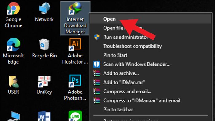 Click chuột phải vào biểu tượng Internet Download Manager > Chọn Mở để bắt đầu sử dụng phần mềm.