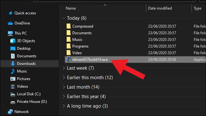 Mở thư mục Downloads và nhấp đúp chuột trái vào file đã tải về.