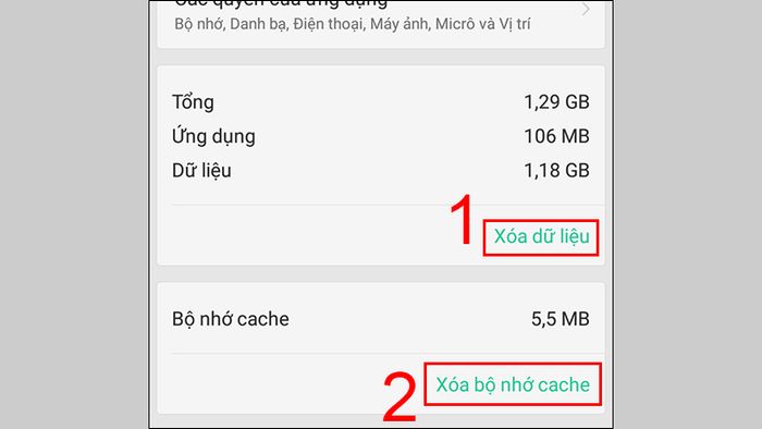 Bước 3: Chọn Xóa dữ liệu và Xóa bộ nhớ cache để đưa Zalo về trạng thái ban đầu. Đây là cách hiệu quả để sửa lỗi Zalo không cập nhật nhật ký.