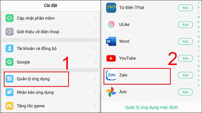 Bước 2: Chọn Quản lý ứng dụng > Zalo.