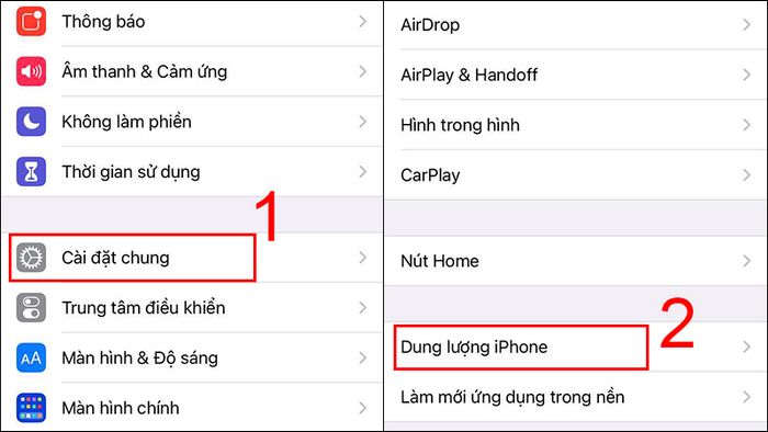 Bước 2: Chọn Cài đặt chung > Dung lượng iPhone.