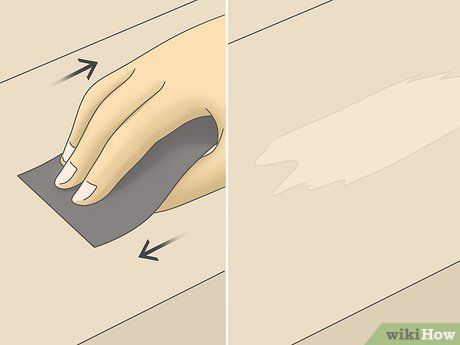 Mài nhẵn keo gỗ bằng giấy nhám có độ mài 120 đến khi nó bằng phẳng với phần còn lại của gỗ. Chà nhẵn bề mặt gỗ theo hình tròn hoặc về phía trước và sau để làm mịn bất kỳ khu vực nổi hoặc gồ ghề nào. Thay đổi hướng mài thường xuyên để bề mặt trông đều. Lau sạch bất kỳ bụi gỗ nào và chạy ngón tay qua bề mặt gỗ để kiểm tra xem nó có cảm giác bằng phẳng không.