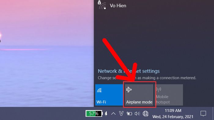 2. Cách kích hoạt, ngắt chế độ máy bay trên máy tính qua biểu tượng mạng