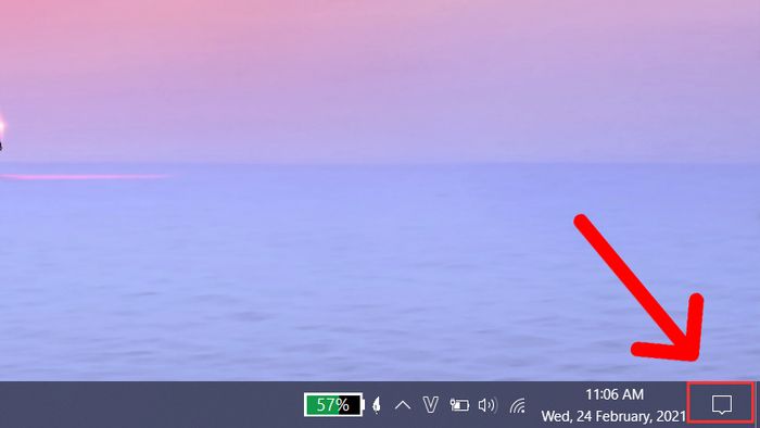 Bước 1: Mở Action Center bằng cách nhấn tổ hợp phím Windows + A hoặc chạm vào biểu tượng trên thanh Taskbar.