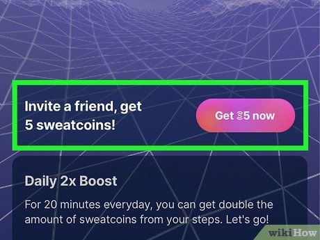 Mời bạn bè tham gia. Sweatcoin vui hơn khi có bạn bè. Nhưng ngoài ra, bạn sẽ nhận được 5 sweatcoins cho mỗi người bạn mời tham gia bằng liên kết giới thiệu của bạn. Để gửi lời mời cho bạn bè mà chứa liên kết giới thiệu của bạn, chỉ cần mở khu vực Xã hội của Sweatcoin, chọn Tìm và Mời Bạn Bè, và chọn người bạn muốn mời.