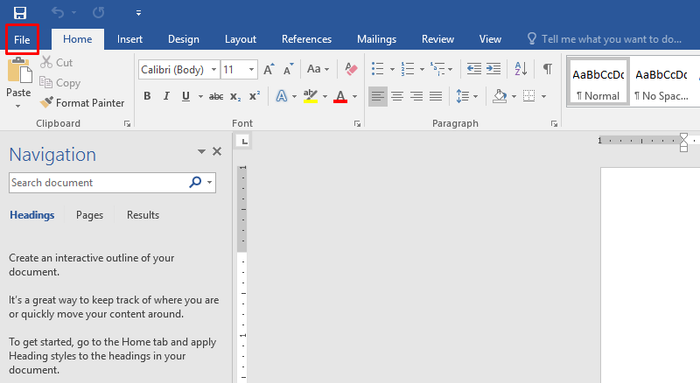 Bước 1: Khởi động ứng dụng Word trên máy tính và chọn mục File.