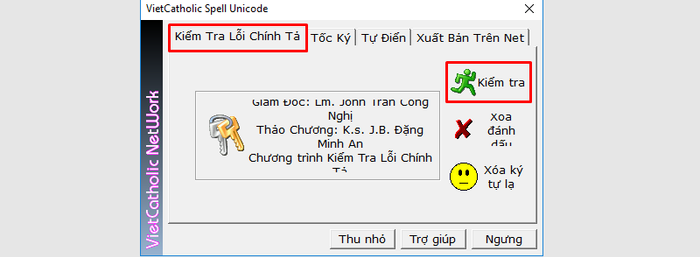 Bước 3: Mở tab “Kiểm Tra Lỗi Chính Tả” và nhấn nút “Kiểm tra” để phần mềm bắt đầu tìm kiếm và đánh dấu các từ hoặc cụm từ sai bằng màu vàng.