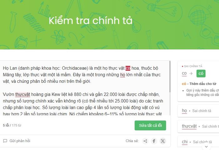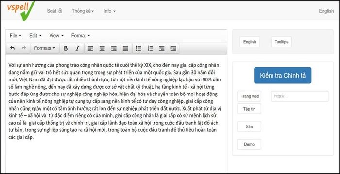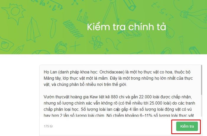 Bước 2: Nhập đoạn văn bản bạn muốn kiểm tra chính tả vào ô trống và nhấn nút Kiểm tra.