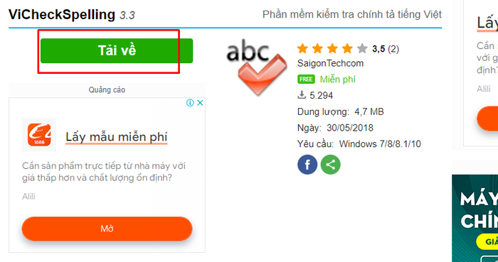 Bước 1: Truy cập Google để tìm kiếm phần mềm VicheckSpelling và tải về máy tính của bạn.