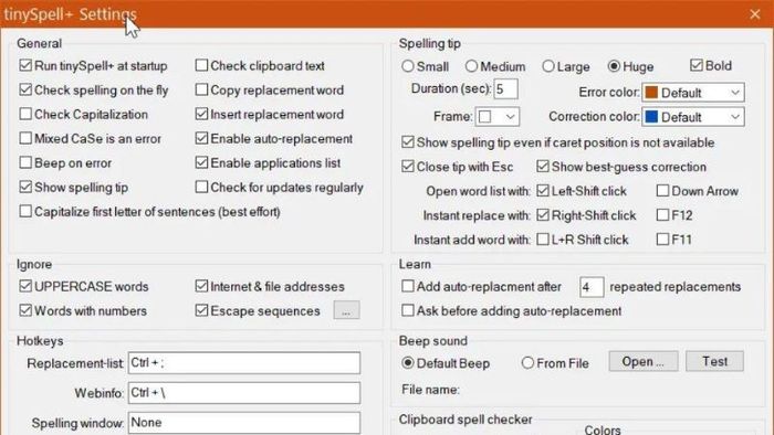 Bước 3: Tiến hành cài đặt TinySpell theo nhu cầu của bạn.