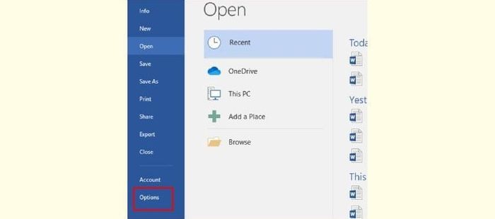 Bước 2: Nhấn vào tùy chọn Options.