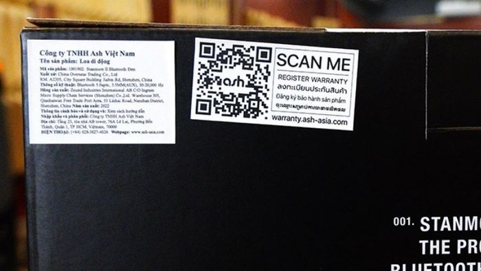 Bạn có thể kiểm tra bảo hành bằng cách quét mã QR Code trên hộp loa Ash Asia. Lưu ý rằng loa Marshall xách tay hoặc hàng nhái sẽ không có mã QR Code. Để đảm bảo, bạn nên yêu cầu sự hỗ trợ từ nhân viên bán hàng để kích hoạt bảo hành. Nếu loa Marshall bạn mua là hàng chính hãng, bạn sẽ nhận được thông tin bảo hành qua tin nhắn hoặc email từ Ash Asia.