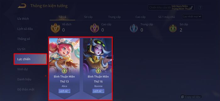 Chọn mục Lực chiến và chọn tướng bạn muốn xem lại thành tích lực chiến của mình. Chỉ cần vậy là xong.